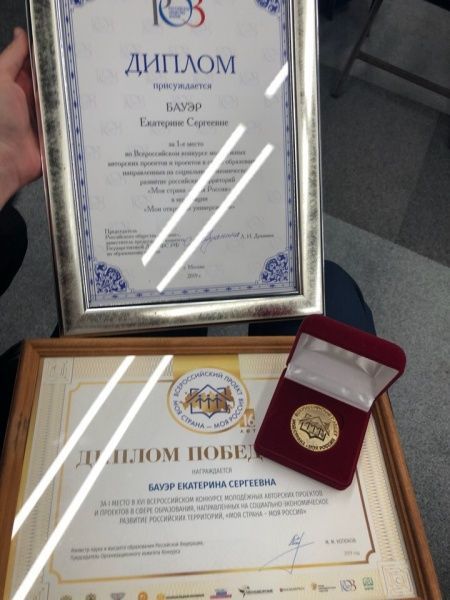 Итак, студентка института экономики, управления и финансов Марийского государственного университета Екатерина Бауэр заняла I место на Всероссийском конкурсе молодежных авторских проектов и проектов в сфере образования, направленных на социально-экономическое развитие российских территорий «Моя страна – моя Россия»!