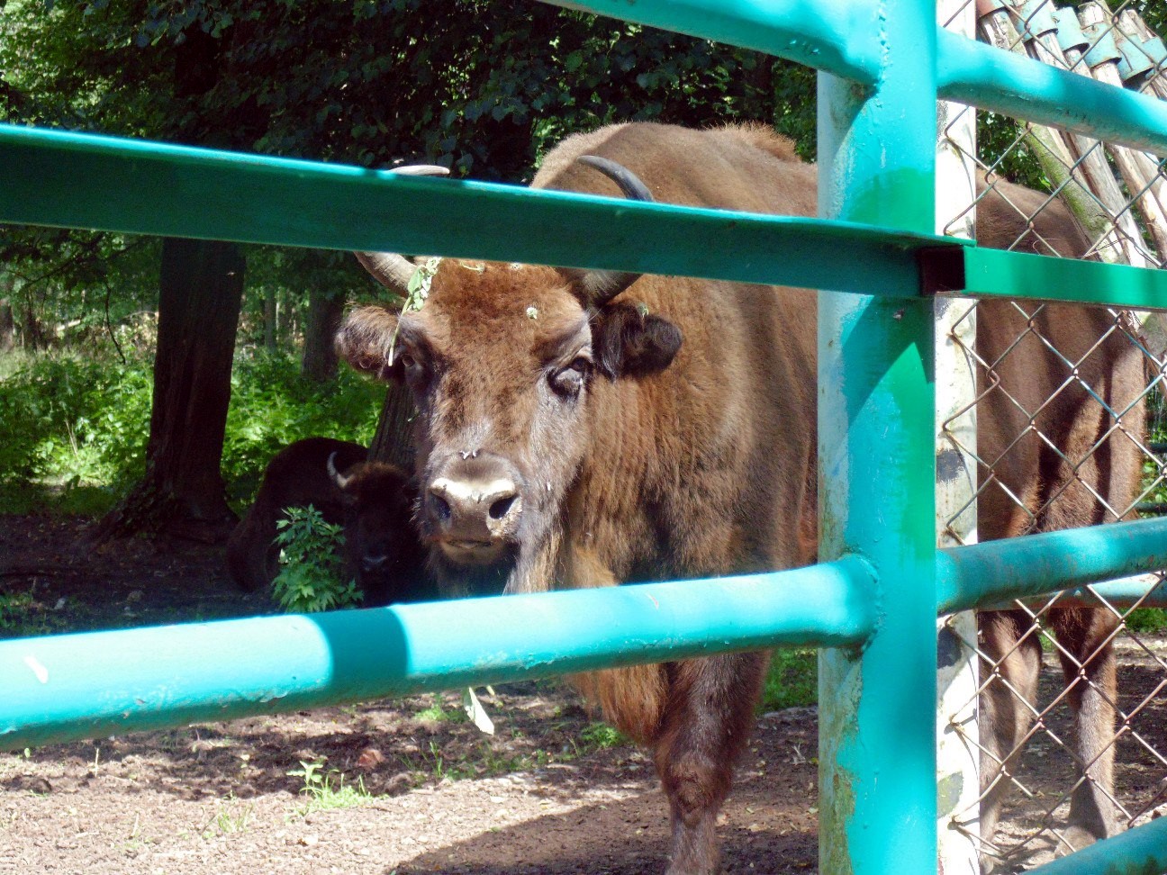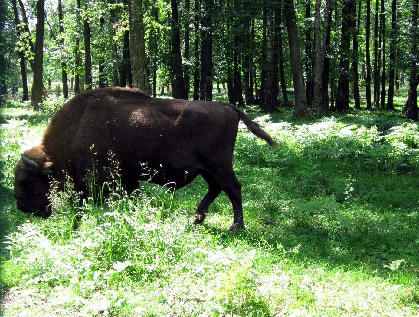 - Теперь без труда мы сможем отличить зубра – дикого лесного быка, от бизона – дикого степного быка. Так, у зубра хвост растет пропорционально телу, а у бизона его размер неизменен. Ноги зубра длиннее – они приспособлены для хождения по высокой траве и лесному валежнику. У бизона роскошная шерсть на голове, его «бороде» и «прическе» позавидует любой зубр. Ещё у бизона передняя половина тела более шерстистая, а на зубре шерсть распределена равномерно. Мы не только увидели зубров вблизи, но и слышали их «речь» – звуки похожи одновременно на ржание лошади и хрюканье свиньи.