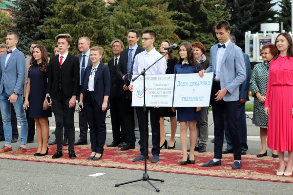 На площади Ленина Йошкар-Олы 1 сентября встретились юные представители трех институтов и пяти факультетов, Аграрного колледжа Института механики и машиностроения ПГТУ, Высшего колледжа «Политехник» и лицея «Мегатех». Их приветствовали руководство университета, министр образования и науки Марий Эл Наталья Адамова, председатель объединения организаций профсоюзов РМЭ Ольга Цветкова и председатель рескома профсоюзов работников народного образования и науки Людмила Пуртова.