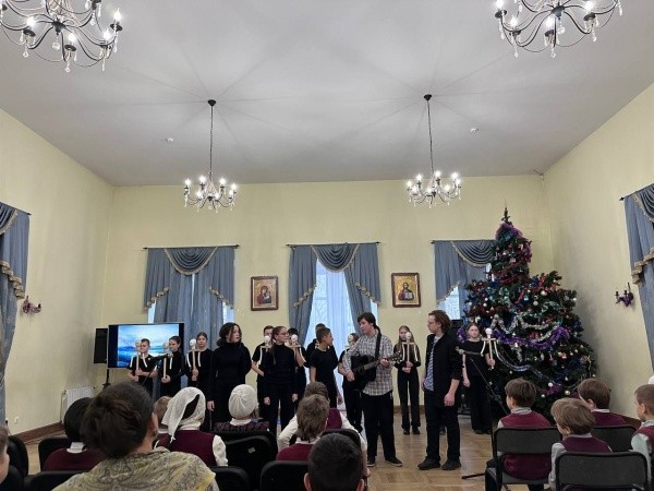В зале школы, которая находится в старинной усадьбе, собрались все ученики и учителя, а также священники во главе с архиепископом Егорьевским Матфеем - викарием Святейшего Патриарха Московского и Всея Руси Кирилла. На память юным актерам вручили подарки, а потом они отправились на экскурсии, побывали в музее колоколов, в Третьяковской галерее, посетили Храм Христа Спасителя, Покровский монастырь и другие православные святыни.
