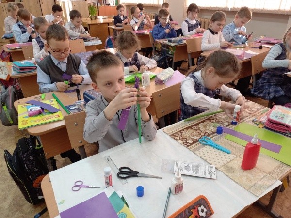 Так, вторые классы школы №15 изготовили лаванду из бумаги на одном из уроков, в в 1-Д классе на уроке изобразительного искусства ребята рисовали Крымскую лаванду.
