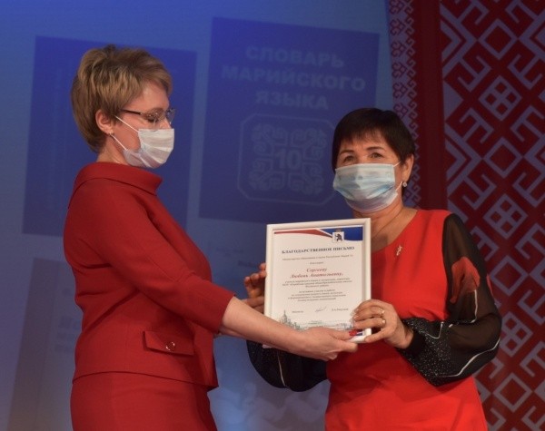 В рамках проведения Дня марийской письменности благодарности вручены Надежде Александровне Голубкиной, учителю марийского (государственного) языка Моркинской школы № 2, а также Любови Анатольевне Сергеевой, директору, учителю марийского (родного) языка Карайской школы Волжского района.