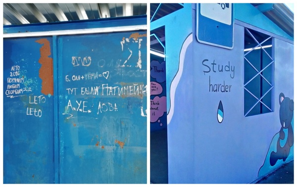 Всего школьники выбирали из трех проектов и предметов – русский язык, английский язык и математика. Эскизы к ним подготовила ученица Екатерина Юркина. В итоге выбор был сделан и сейчас остановка стала мини-пособием для изучения некоторых правил английского языка.