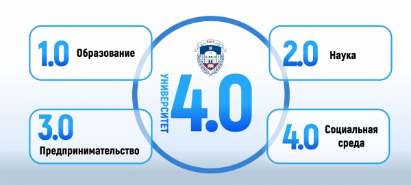 Формат университета 4.0 самый актуальный в постиндустриальном мире. Он ориентирован не просто на социальную среду, а на формирование целых сообществ, объединяя талантливых людей и давая им возможности для успешной разработки и реализации их проектов. Это перспективная, развивающаяся на цифровых платформах модель университетов. Изменение экосистемы общества влечет за собой изменение социального заказа. Поэтому уже сегодня можно наблюдать развитие сетевых сообществ и ряда других новейших форм организации жизнедеятельности университетов. Получают стремительное развитие открытые образовательные ресурсы с вариативными комбинациями обучения. Прорывные технологии требуют от университетов перестройки структуры и сущности образования, которое должно быть ориентировано на то, чтобы пробудить таланты в человеке. Итогом же деятельности вуза должно стать создание жизнеспособного продукта и деятельный вклад в развитие экосистемы общества.
