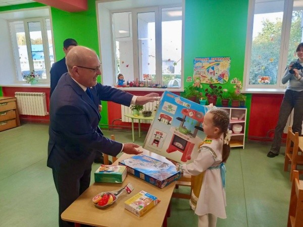 Он осмотрел игровые и спальные помещения, оценил созданные в детском саду условия. Не обошлось в этот день и без подарков для ребят.