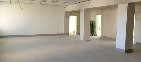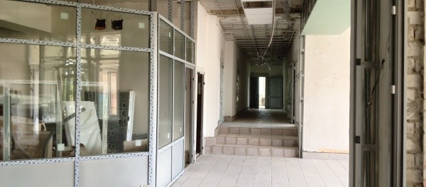 Уже сделан демонтаж, работы по стяжке пола, проложены электро- и слаботочные сети. На всех этажах установили пластиковые окна и двери, заменили канализационные и водопроводные трубы.