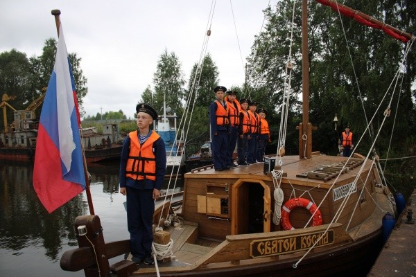 Отметим, чердачный струг "Святой Косма"  - это детское учебное парусное судно. Он представляет собой историческую реплику чердачных стругов, на которых в 1696 году козьмодемьянские стрельцы ходили в Азовские походы с Петром Первым.