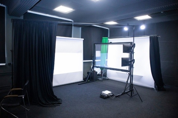 Профессиональная видеокамера, освещение, мониторы, суфлер, доска с led - подсветкой, на которой можно вести записи, фоны разных цветов, хромакей, радиомикрофоны - в студии есть всё для того, чтобы любой желающий из числа студентов или преподавателей мог записать урок, видеокурс или вебинар.