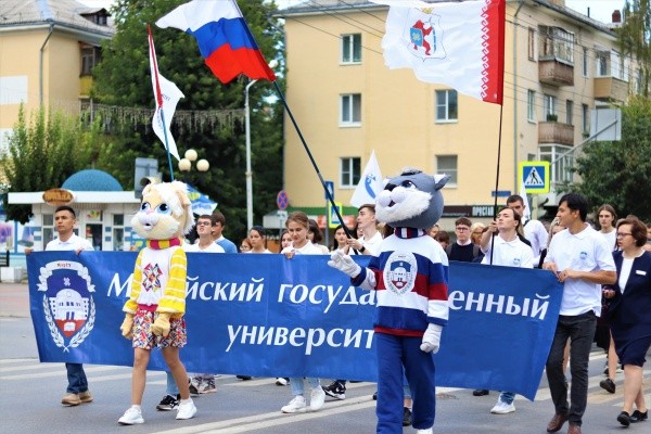 Студенты первого курса приняли участие в традиционном шествии «Парад студенчества», начавшегося у корпуса Педагогического института. В этот праздничный день студенты и сотрудники вуза не забыли вновь почтить память героев, сражавшихся ради будущего страны и народа во времена Великой Отечественной войны. После возложения цветов к памятнику неизвестному солдату и вечному огню процессия двинулась к площади Оболенского-Ноготкова, где и прошла торжественная линейка с участием почётных гостей: врио Главы Республики Марий Эл Юрия Зайцева, сенатора Российской Федерации Константина Косачёва, Председателя Государственного Собрания Республики Марий Эл Анатолия Смирнова.