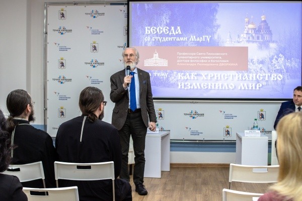 Познавательные встречи с профессором прошли и на других площадках столицы республики, а также в Волжском, Звениговском, Моркинском и Сернурском районах. Визит Александра Дворкина нес просветительский характер и был приурочен к 30-летию образования Йошкар-Олинской и Марийской Епархии.