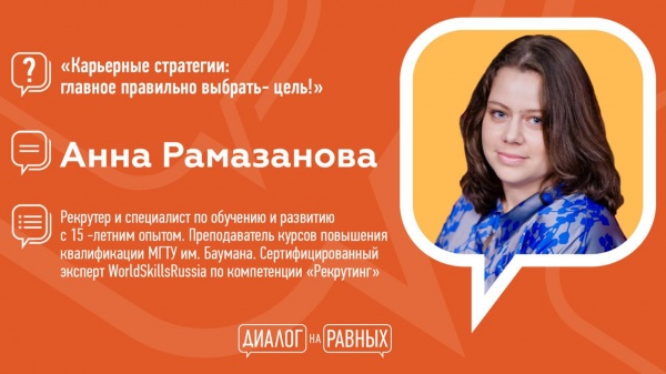 20 марта на базе «Точки кипения – Йошкар-Ола» состоится уже ставшее традиционным мероприятие «Диалог на равных». В качестве эксперта на нем выступит Анна Рамазанова – рекрутер и специалист по обучению и развитию с 15-летним опытом, преподаватель курсов повышения квалификации МГТУ им. Баумана, сертифицированный эксперт WorldSkillsRussia по компетенции «Рекрутинг».