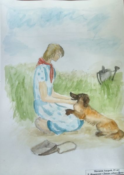 В старшей возрастной группе победил пятнадцатилетний Андрей Матвеев из деревни Пуял с рисунком по мотивам рассказа Рувима Фраермана «Дикая собака Динго».
