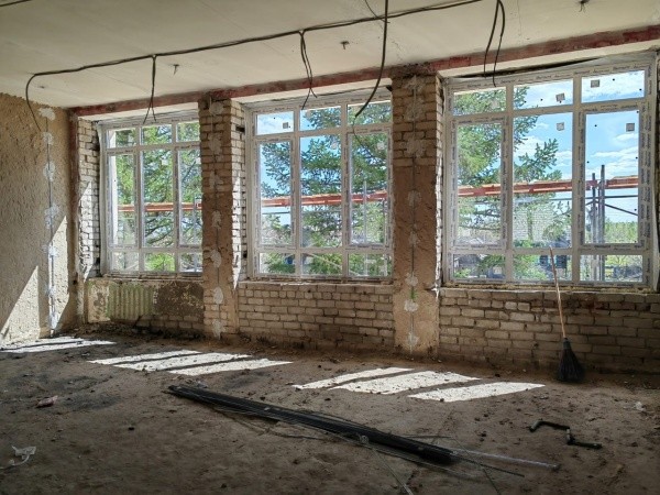Работы в школе уже начались. Мастера разбирают покрытие полов, расчищают стены, демонтируют кровлю центрального крыльца, устраивают электропроводку и пожарную сигнализацию.
