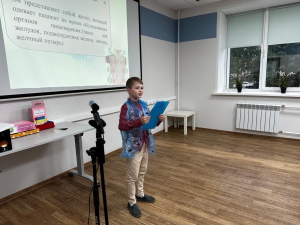 Затем состоялась и очная защита проектов. Члены жюри очень внимательно слушали ребят, которые представили множество интересных идей и проектов самой разной направленности, от настольных игр до медицинских аппаратов. Выбор победителей был очень сложным.