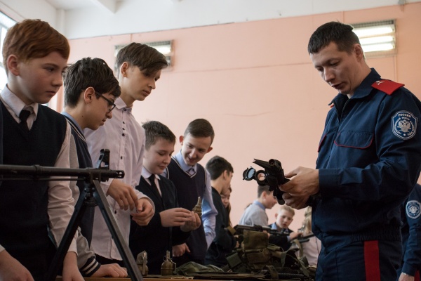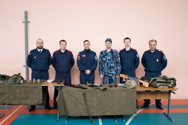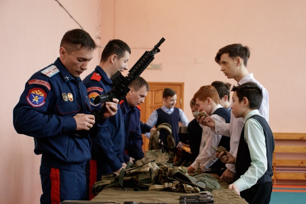 В одной из школ села Семеновка в рамках месячника оборонно-массовой работы 8 февраля состоялась встреча обучающихся с представителями единственного официально зарегистрированного казачьего общества Марий Эл «Хутор Царевококшайский». Бойцы предоставили школьникам уникальную возможность собственными глазами увидеть и даже потрогать оружейные единицы. Конечно, это не боевое оружие, но разобрать автоматы, понажимать на курок незаряженных пистолетов, примерить на себя бронежилет и каску детям было крайне интересно.