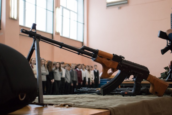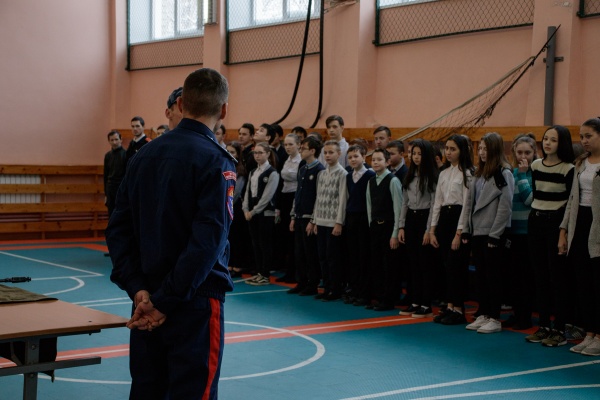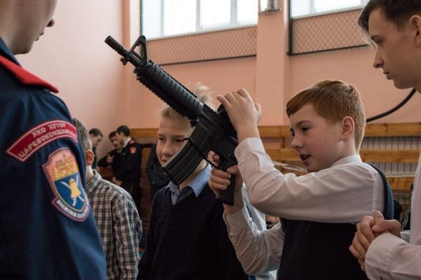 Класс за классом любопытные ребята подходили к казакам и лежащим перед ними экземплярам. Дети задавали вопросы, внимательно слушали ответы. Кадеты сразу принялись за разборку и сборку автоматов. А потом и девочки из классов помладше попробовали свои силы в этом непростом деле. Школьников действительно заинтересовали рассказы казаков: они подолгу стояли возле столов, всё трогая и рассматривая.