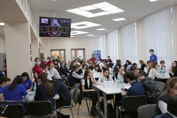 В зале в числе 19 команд ученики Лицея № 11 им. Т.И. Александровой Йошкар-Олы. Лицеисты третий год подряд принимают участие в Игре «Что? Где? Когда?» в рамках Интеллектуальной Олимпиады ПФО среди школьников. Два года команда Лицея становилась сильнейшей на уровне республики.