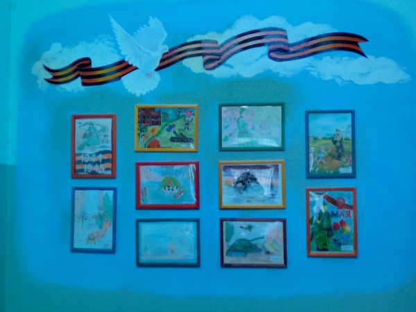 В Музее боевой славы можно увидеть макет военного сражения, который изготовили воспитатели, машину «Катюшу», сделанную родителями малышей, и военный сюжет, нарисованный на стене. У макета Вечного огня установлены фигуры детей в военной форме, которые словно несут караул, отдавая честь павшим воинам.