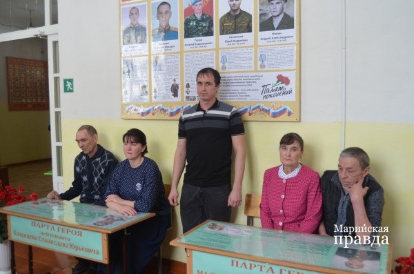 Право открыть парты героев предоставили родителям офицеров: Людмиле Ивановне и Ивану Васильевичу Малининым, Елене Аркадьевне и Александру Юрьевичу Казанцевым. Состоялось возложение цветов.