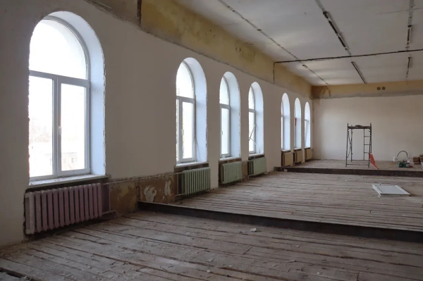 В гимназии №14 уже почти закончились демонтажные работы. Сейчас строители взялись за полы и выравнивают стены. Параллельно меняют электропроводку и ставят новые окна.