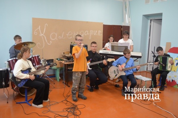 «Календарик» - это недавно созданный вокально-инструментальный ансамбль. Свободных помещений в школе нет, поясняет заместитель директора по учебно-воспитательной работе Елена Казакова, поэтому уплотнились немного в мастерской, тем более что учитель технологии Михаил Фоминых является отцом-основателем ансамбля.