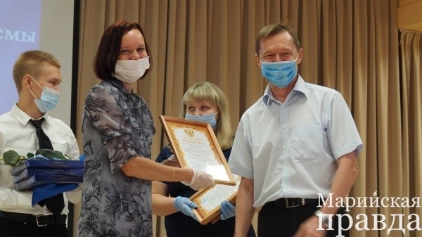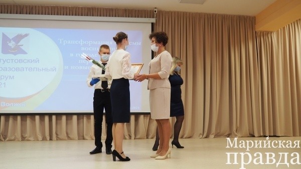 Педагогов Волжска также поздравили заместитель министра Нонна Антоничева, которая наградила учителей почетными грамотами от ведомства. Были отмечены учитель коррекционных начальных классов школы №1 Анастасия Шадрина, учитель физической культуры Светлана Егорова, учитель истории и обществознания Александр Малин, а также директор школы №4 Марина Янковская, которая награждена почетной грамотой за вклад подрастающего поколения и в честь пятилетнего юбилея Российского движения школьников.