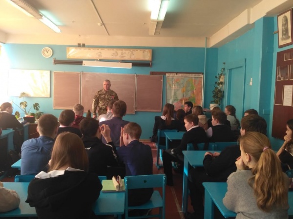 Походный атаман хуторского общества «Покровский» Александр Глухов рассказал ребятам историю казачества и о подвигах казаков. Упомянул атаман и о работе патриотического клуба. В рамках урока мужества была поднята тема подготовки к армии.
