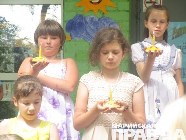 К подобной акции Йошкар-Ола присоединяется уже не первый год. Вот и сегодня к Вечному огню придут и взрослые, и дети. Причем некоторые ребята зажгут свечи, в которые они вложили частицу своей души. В пятницу в лагере, который работает на базе школы № 16, дети собственноручно принимали участие в изготовлении «свечей памяти». Прежде чем приступить к этой ответственной работе, вместе с учителями они провели митинг, вспомнив одну из самых страшных страниц нашей истории.