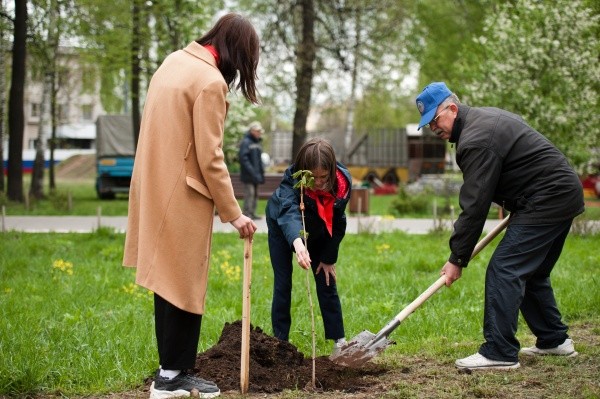 А саженцы уже ждали ребячьих рук. И они дружно взялись за дело! Ветераны в стороне не остались: вместе с пионерами копали лунки, строго соблюдая отведенные для аллеи параметры, а потом, аккуратно посадив деревца, поливали и привязывали их к колышкам. Полчаса дружной, активной совместной работы, и - аллея заложена!
