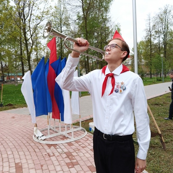 Прежде чем приступить к посадке деревьев, пионеры, как и подобает дружине, выстроились в ряд, равняясь на знамя, прочитали торжественно стихи и на призыв старших товарищей, бывших комсомольцев: «Служить Родине, добру и справедливости будьте готовы!» дружно ответили: «Всегда готовы!»