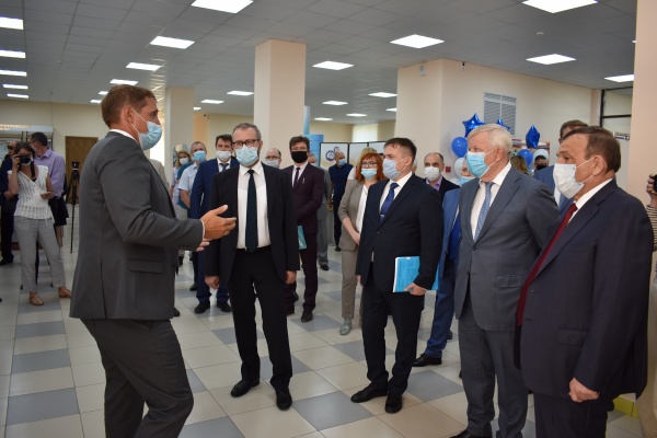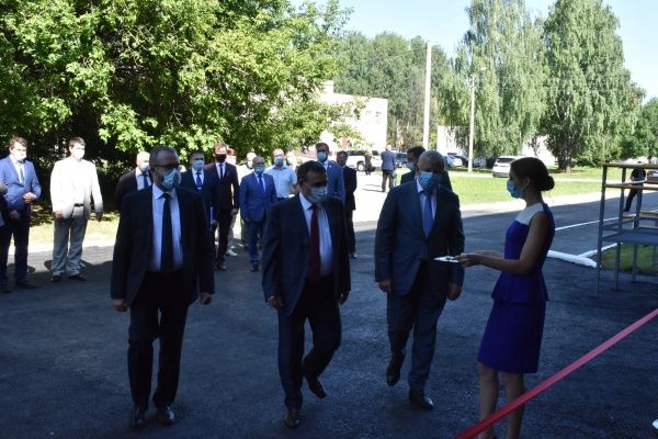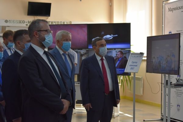 Александр Евстифеев, Сергей Люлин и Сергей Боев торжественно разрезали красную ленту у входа в здание, а внутри их ждала выставка. Подробно с разработками, созданными опорным вузом совместно с партнерами, познакомили ректор МарГУ Михаил Швецов и проректор по научной деятельности и инновациям Анатолий Леухин.