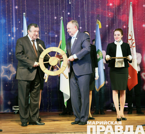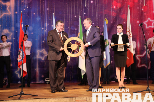 Вчера 31 марта, в Йошкар-Оле, в 22-й день рождения Волгатеха в статусе российского университета его президент и экс-ректор Евгений Романов передал символический штурвал вуза новому ректору Виктору Шебашеву.