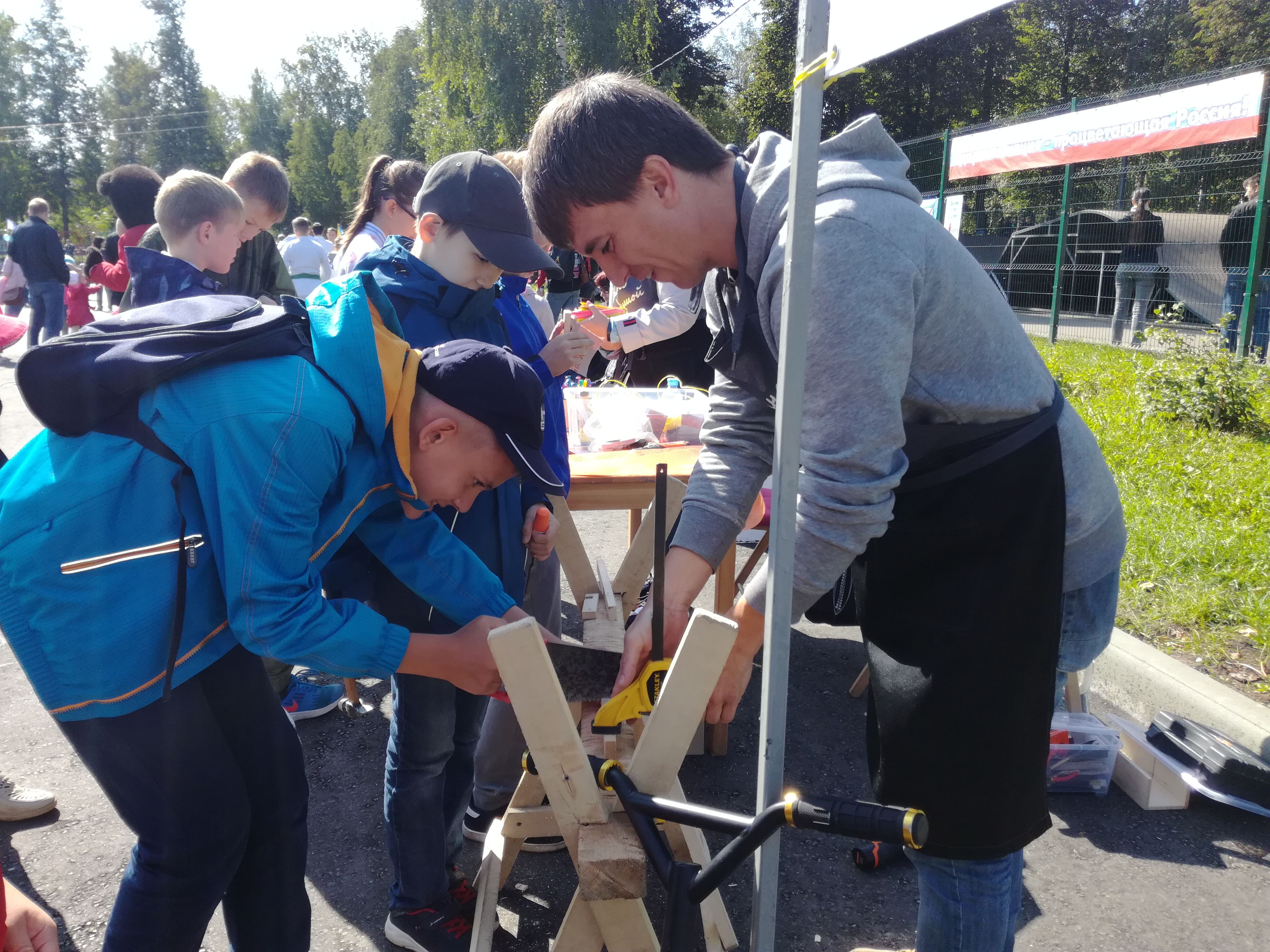 В Парке Победы за ДК им.В.И.Ленина собрались маленькие и взрослые йошкаролинцы и гости столицы. На празднике "Завтра в школу!" выступили команды айкидо и работали 14 площадок, на которых ребята смогли показать свои знания практически по всем школьным предметам.