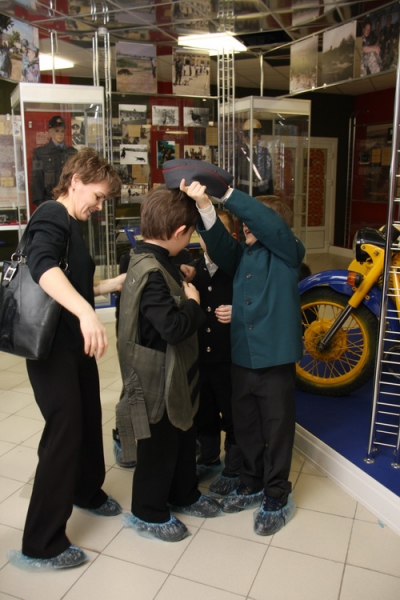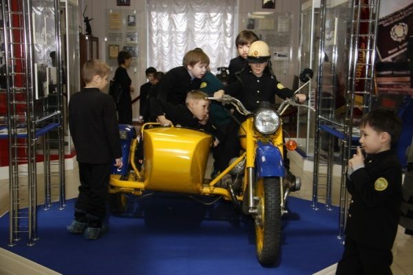 В музее высавлены образцы обмундирования разных эпох, личные вещи и награды сотрудников, легендарный пулемет «Максим» и отреставрированный милицейский мотоцикл 70-х годов. Дети с интересом рассматривали экспонаты, а некоторые даже примерили экипировку милиционеров на себя.