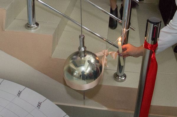 Под общие аплодисменты была торжественно перерезана красная лента, а затем, для чистоты эксперимента, огнем свечи разорвана нить, которая сдерживала шар маятника.
