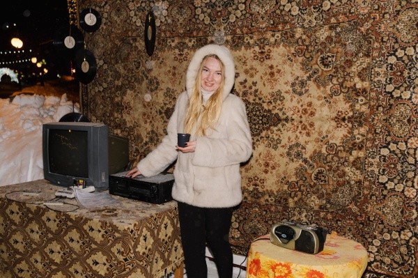 В праздничной программе приняли участие школьники и студенты. Любители зимних забав участвовали в конкурсах и выигрывали призы. Вишневая девятка, узорчатый ковер, завернутые в газету семечки — организаторы подготовили тематические фотозоны в стиле 90-х.