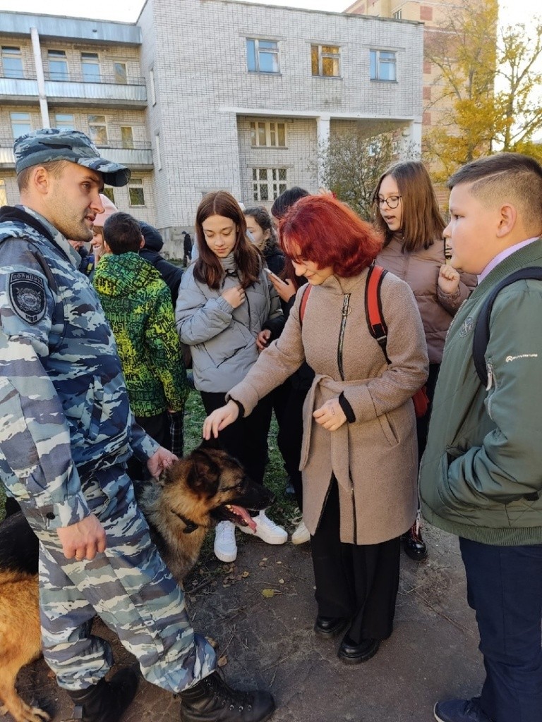 Семиклассники школы № 15 были приятно удивлены подарку от их учителей − знакомству со специалистами элитного подразделения МВД России. Кинологи рассказали ребятам правила поведения при встречах с бродячими собаками и своей работе, поделились историями из служебной практики и даже показали приемы дрессуры Барбосов − свои мастерство и профессиональные навыки продемонстрировал один из специалистов с немецкой овчаркой Бертой.