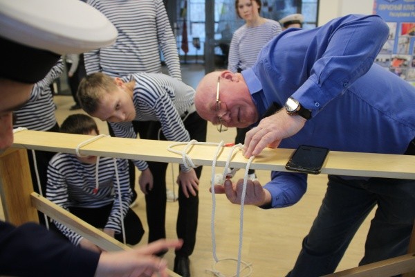 На соревнования были приглашены специалисты: руководитель Козьмодемьянского инспекторского участка ГИМС старший государственный инспектор по маломерным судам Алексей Сергеевич Пономарев и начальник Козьмодемьянской аварийно-спасательной группы Олег Александрович Фёдоров. Юнги состязались в трех возрастных группах. Им предстояло завязать шесть морских узлов: беседочный, рифовый, шкотовый, удавку, шлюпочный и простой штык. Лучшими в своих возрастных группах стали: Дарио Хименез Кузьмин (мл.группа), Юлия Васютина (ср.группа) и Надежда Кокушкина (ст.группа). Призерам были вручены дипломы и подарки.