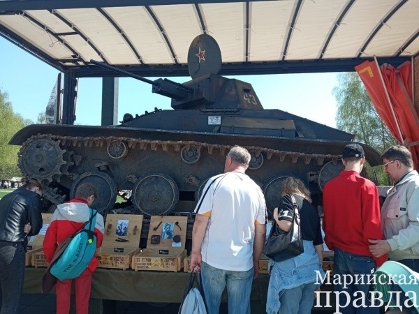 Акция проходит в рамках грантового проекта «История Кировского Т-60». У Монумента Воинской Славы в Центральном парке культуры и отдыха с 10:00 до 17:00 представлены экспонаты, поднятые поисковыми отрядами Кировской области. Ну а главным «героем» выставки стала самоходная модель танка Т-60.