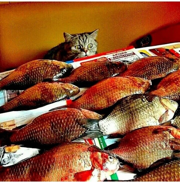Понять чувства кошки, пожалуй, можно. А автор этого фото попыталась прочитать мысли пушистой любительницы рыбки.