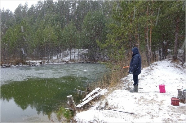 Мой давний приятель йошкаролинец Сергей Бабиков до самых морозов не отказывался от поплавочной удочки. На поверхности водоема уже снежная шуга и даже ледок хозяйничают, а он с товарищем с берега продолжал сезон открытой воды: подручными средствами освобождая участок для заброса снасти от снежно-ледового покрывала.И вот он, поплавок на воде! И первый окунек на снежном берегу (фото 1). За ним второй, третий… Быть ухе, жарехе и на засол останется! Главное – удовольствие получаешь, когда дрогнет поплавок, а то и вовсе скроется под водой. Тяни! А когда чувствуешь тяжесть на леске – душа поет, время останавливается! Важно только одеться правильно, по-зимнему, да термос с горячим чаем не забыть.