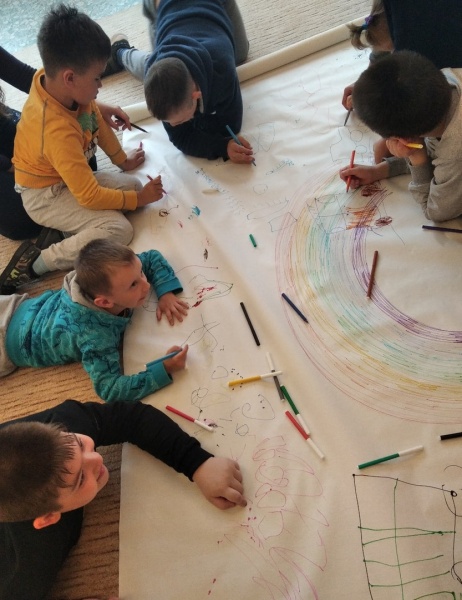 Здесь ребят ожидал не менее веселый день – с играми, танцами, творческими конкурсами. Музыкальный зал реабилитационного центра стал площадкой для празднично- познавательного мероприятия для ребят. Их встретила героиня Ириска, предложившая всем весело провести время. Например, малыши с удовольствием рисовали лето, а детки постарше кружились в танце.