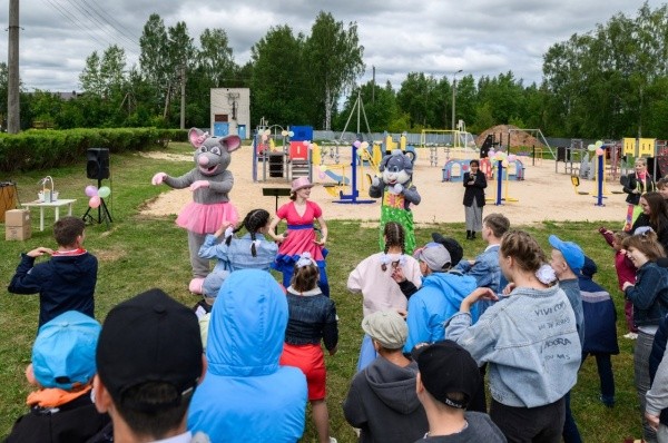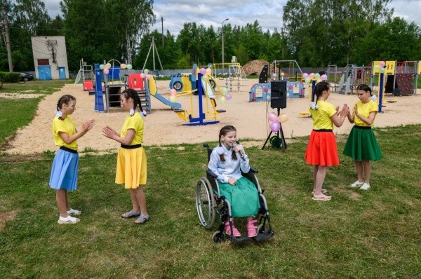 На площадке детского дома-интерната «Солнышко» появились ворота с баскетбольным щитом, современные игровые комплексы, качалки, пожарная машина, качели, мишень, бизиборд, спортивное оборудование и тренажеры.