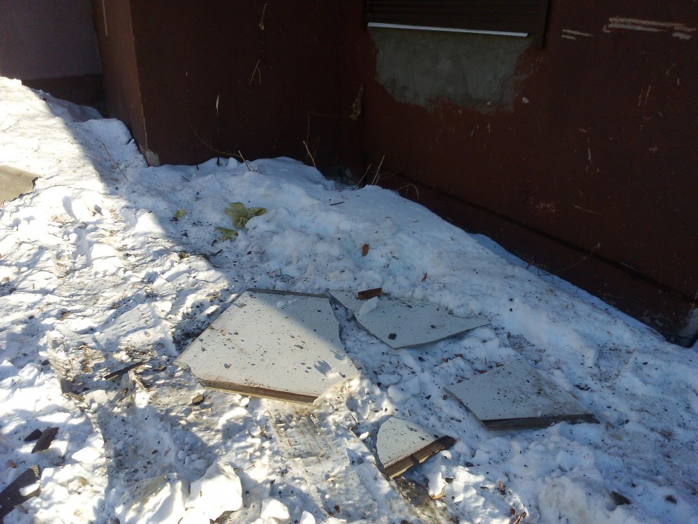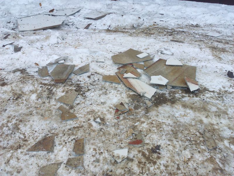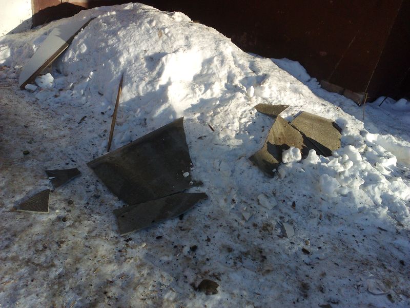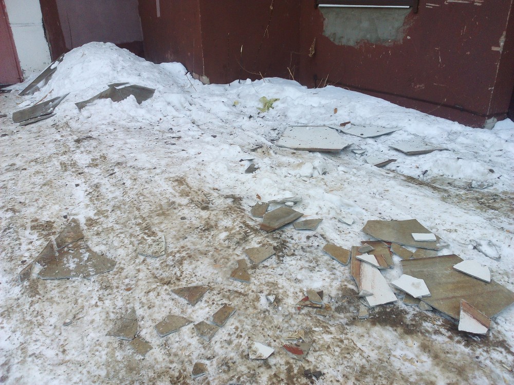- Мы живем в этом доме уже 30 лет, и ни разу за это время в нем не делалось ремонта, - рассказывает йошкаролинка. - Я даже могу предположить, из-за чего отпала облицовка. Дом построен еще в 1980 году. За столько лет металл под шифером просто-напросто прогнил насквозь, и не удержал тяжелый шифер.