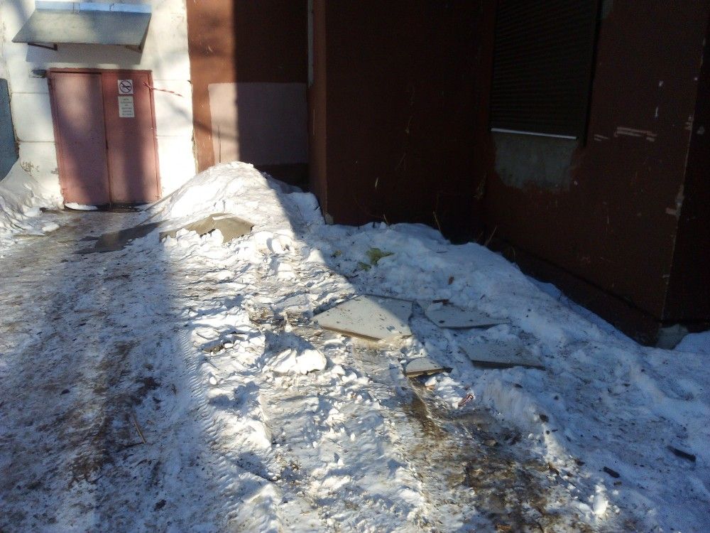 Несчастный случай произошел в понедельник, 16 февраля. Как рассказывают очевидцы, молодая жительница Йошкар-Олы стояла у заднего входа в столовую, когда с высотки посыпались крупные куски шифера и штукатурки. Многие из них угодили прямо на стоящий рядом автомобиль, а один из них отскочил от машины и попал девушке в голову. Ничего не ожидающая йошкаролинка не успела увернуться. По утверждениям тех же очевидцев, после удара у девушки были видны кости черепа. Прибывшая на место скорая увезла ее в хирургическое отделение Республиканской больницы.