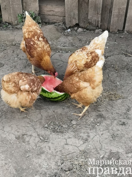 Вот мне на днях довелось встретить куриную компанию, которая дружно уплетала арбузятину. Может быть, хозяева поделились сладкой покупкой с пернатыми в расчете проверить качество продукта? Если так, то «мячики» можно брать – куры склевывали арбуз так, что за ушами пищало.