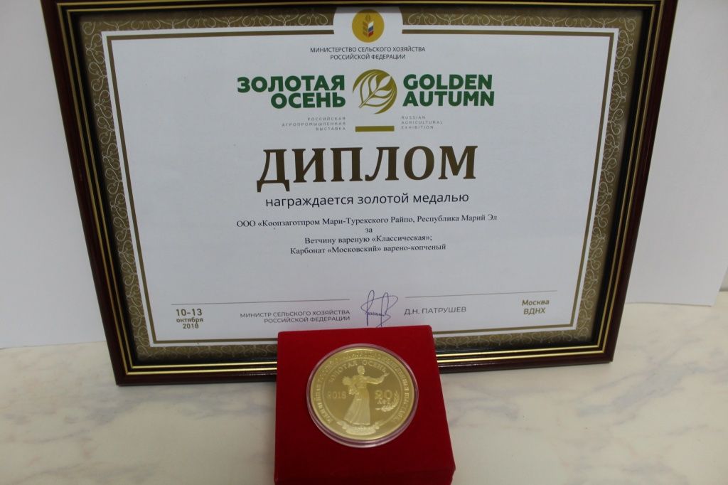 Жители нашей республики, выросшие на натуральных продуктах, знают и любят продукцию Мари-Турекского райпо. Впрочем, не только они. Начиная с 2006 года ее вкус и качество не раз высоко оценивало жюри не только республиканского, но и федеральных конкурсов. Вот и в нынешнем году один из видов продукции (карбонад «Московский») оказался в числе республиканских лидеров на федеральном этапе престижного конкурса «100 лучших товаров России» в номинации (категории «Мясо и мясная продукция»). А ветчина «Классическая» и карбонад «Московский» удостоены золотой медали и диплома «За производство высококачественной пищевой продукции» на прошедшей в Москве на ВДНХ 20-й юбилейной российской агропромышленной выставке «Золотая осень-2018».