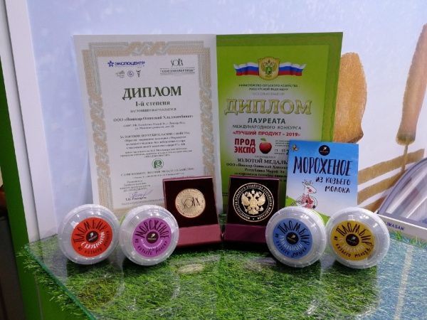 По итогам выставки, Йошкар-Олинский хладокомбинат получил две золотые медали на конкурсах «Лучший продукт – 2019» (мороженое из козьего молока Пломбир «Ванильное») и «За высокие потребительские свойства» (мороженое из козьего молока без добавленного сахара).