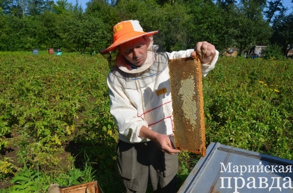 В четверг, наконец, выглянуло солнышко и, хотя было раннее утро, Сергей Кошпаев уже трудился на пасеке: долгожданный теплый и солнечный день дал возможность покачать мед. Симпатичный дом пасечника из красного кирпича с просторной усадьбой, садом - огородом, находится на самой окраине села Токтайбеляк Куженерского района Марий Эл – очень удобно, ведь пчелы не лучшие соседи.