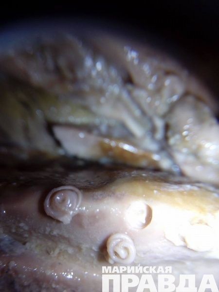 - Купил на рынке печень трески. Жене сразу не понравился вкус: "с горчинкой". Присмотрелась и... Кто знает, что ЭТО? – спрашивает приславший фотографии в группу «МП» в сети «FACEBOOK» йошкаролинец Сергей Ильин.